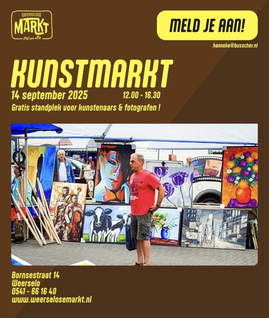 Kunst Markt op de Weerselose Markt op Zondag 14 september !!
